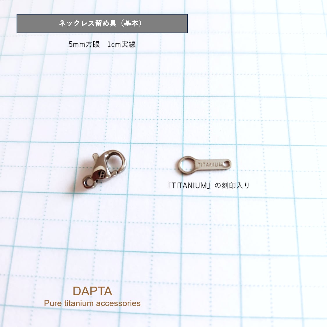 こちらのネックレスは、金属パーツのすべてに純チタンを使用しています。