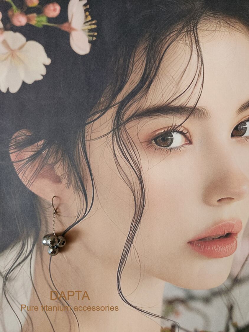 純チタンフックとテラヘルツ鉱石の組み合わせです。シンプルでありながら、耳元で揺れるたびに光を反射し、存在感を放ってくれるデザインに仕上げました。
