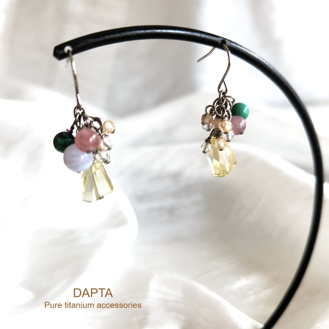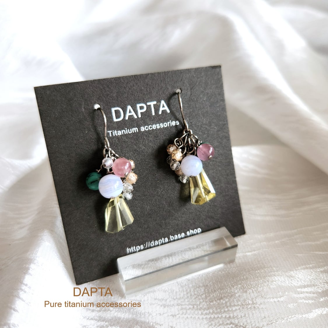 軽やかに揺れるたび、色とりどりの石たちが小さな物語を紡ぎ出す――そんな特別感を味わっていただけるアクセサリーです。日常に少しの彩りを添えたいとき、また大切な方への贈り物としてもおすすめです。