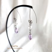 ひとつひとつ手作業で丁寧に仕立てた、アメシストとクリスタルのフックピアスです。