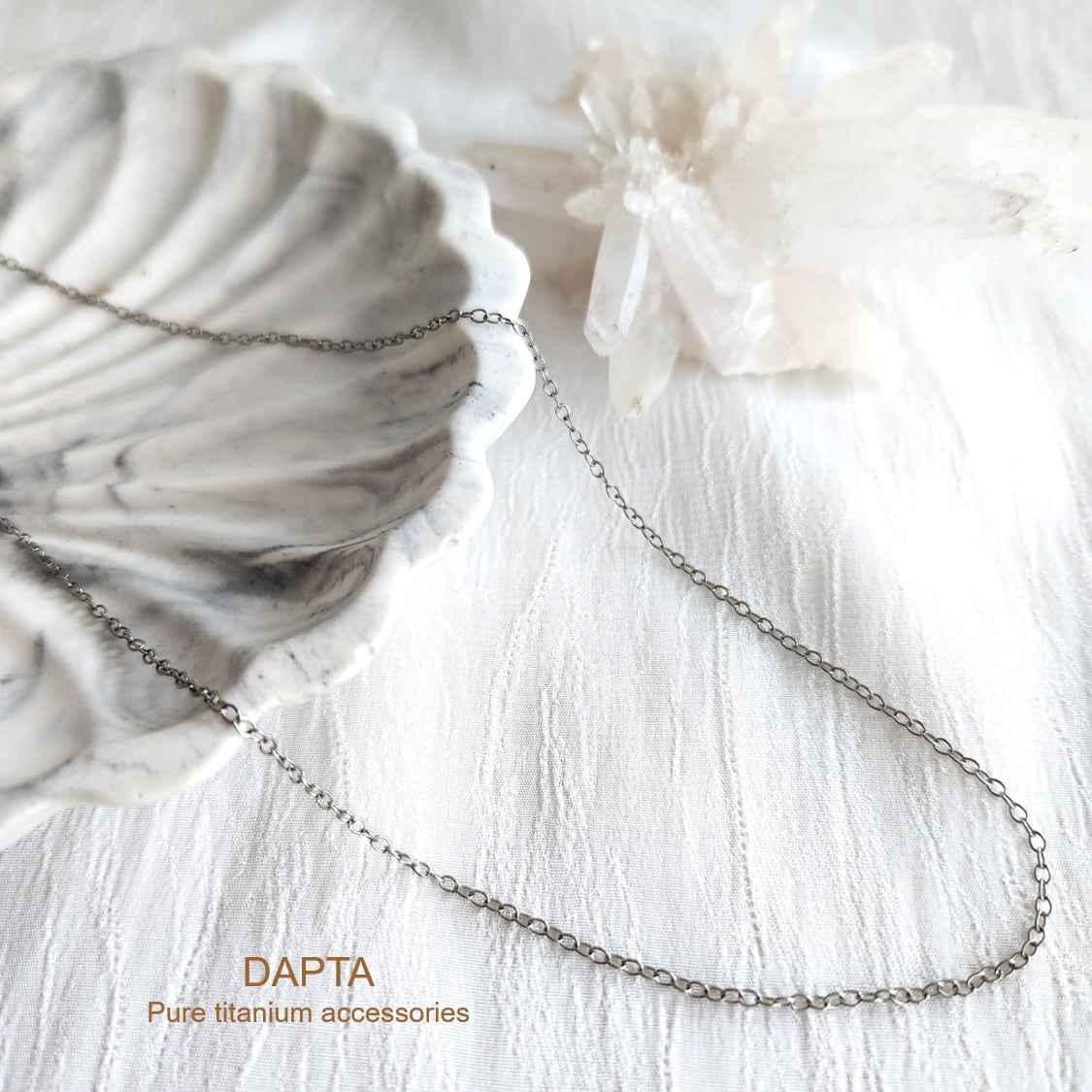 こちらのネックレスは、金属パーツのすべてに純チタンを使用しています。