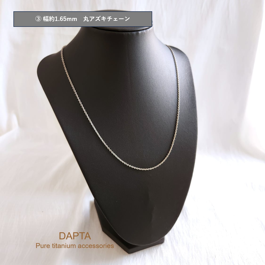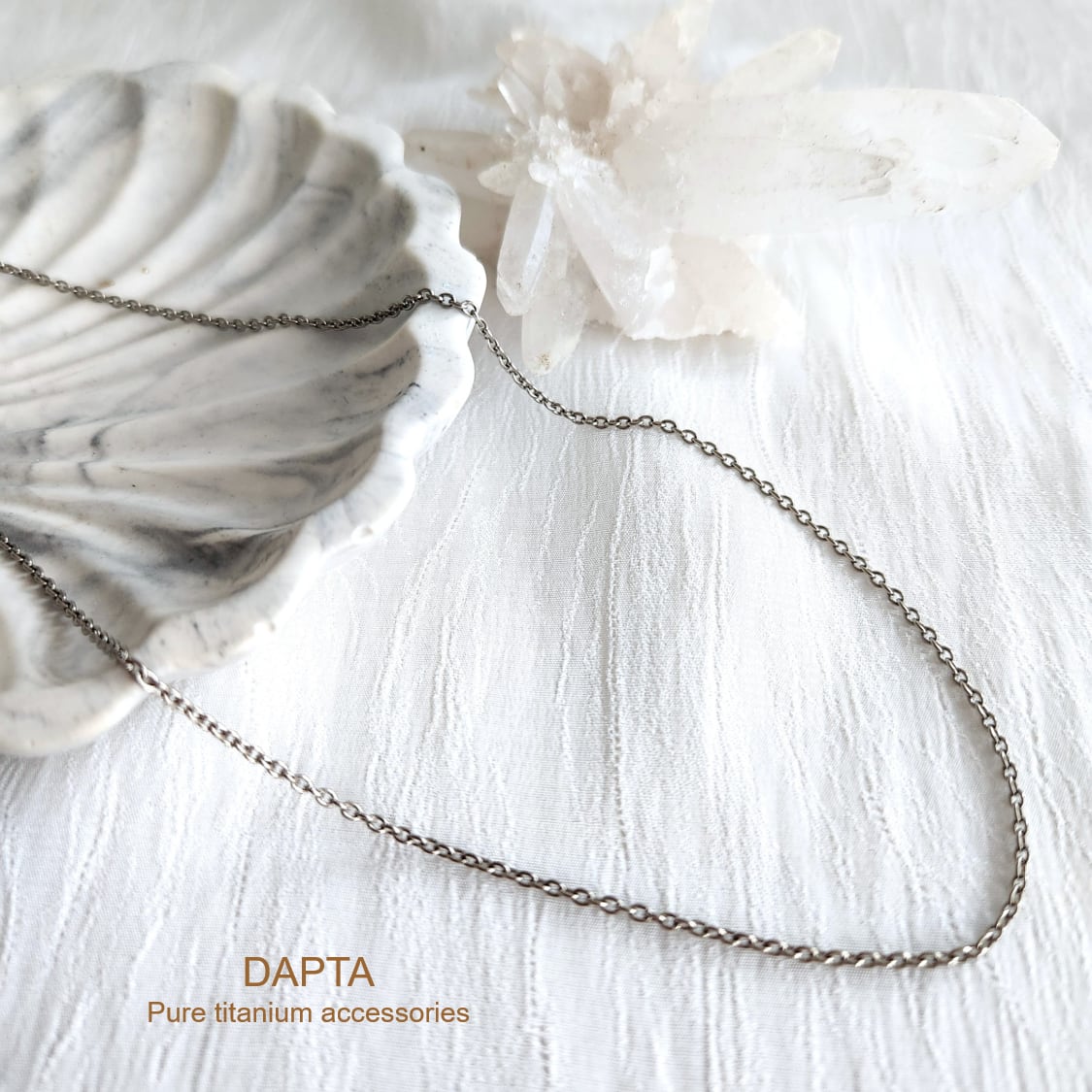 こちらのネックレスは、金属パーツのすべてに純チタンを使用しています。