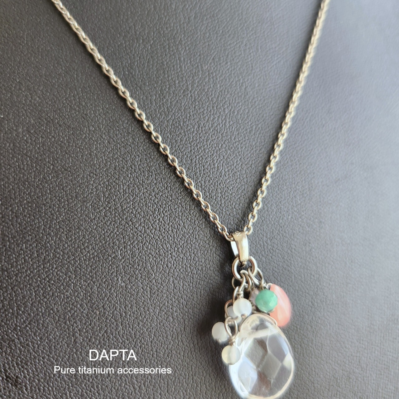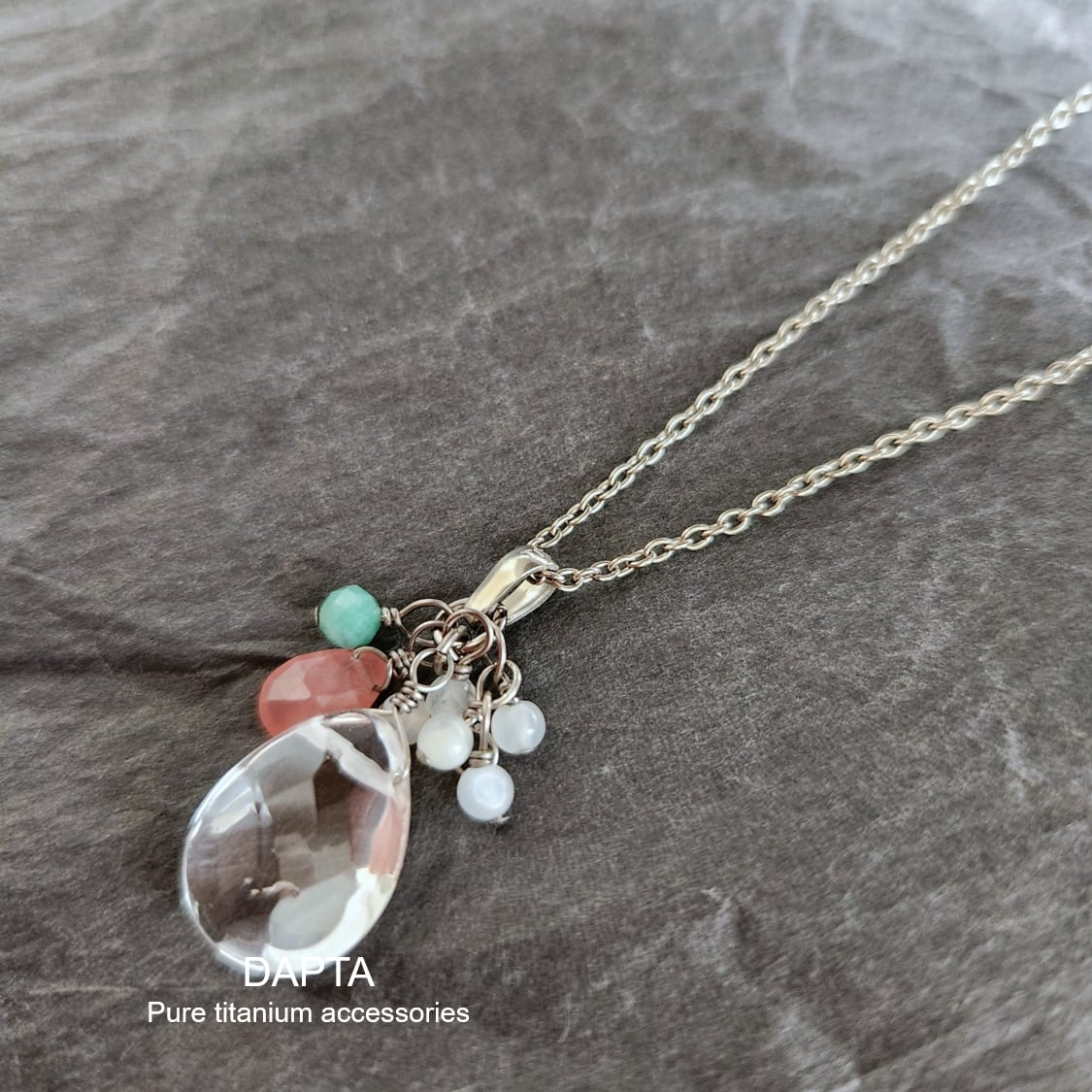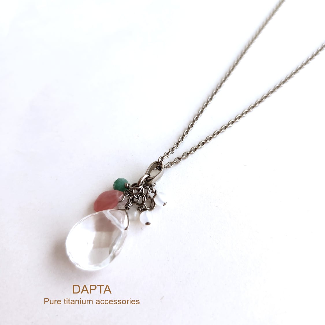 【金属アレルギー対応】純チタンネックレス クリスタル×ホワイトムーンストーン×エメラルド×インカローズ