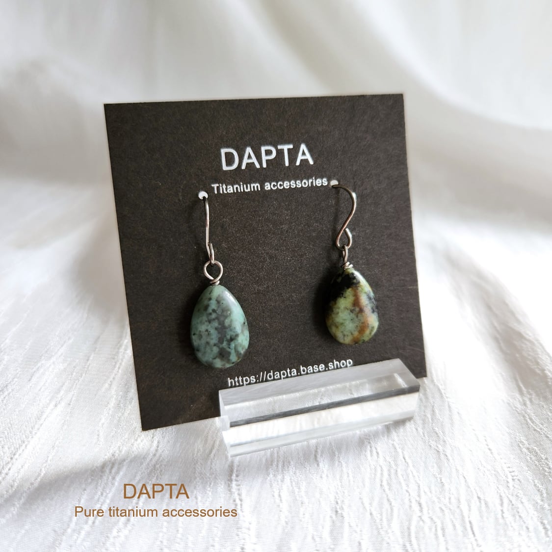 【金属アレルギー対応】純チタン 天然石ピアス アフリカンターコイズ