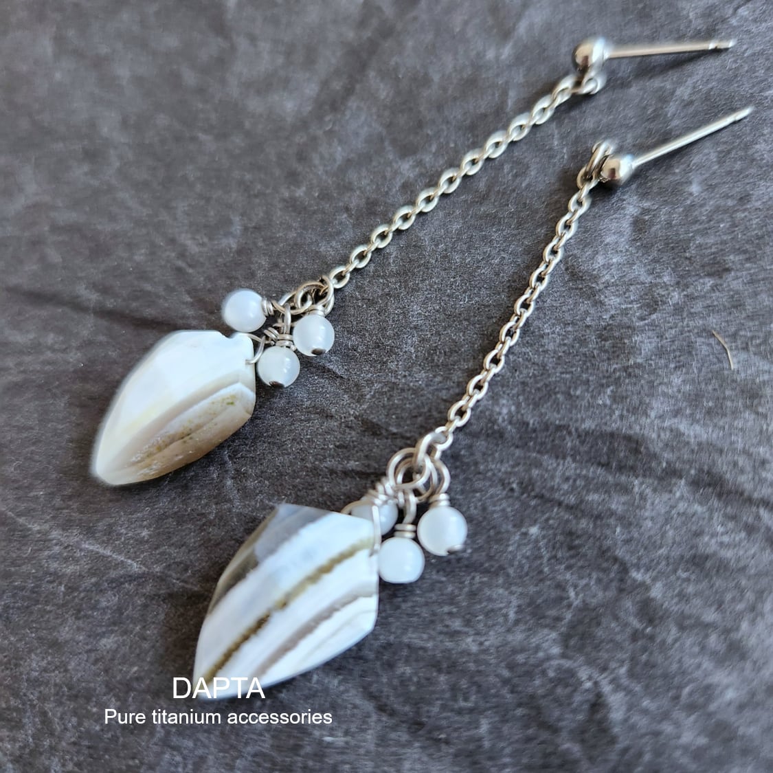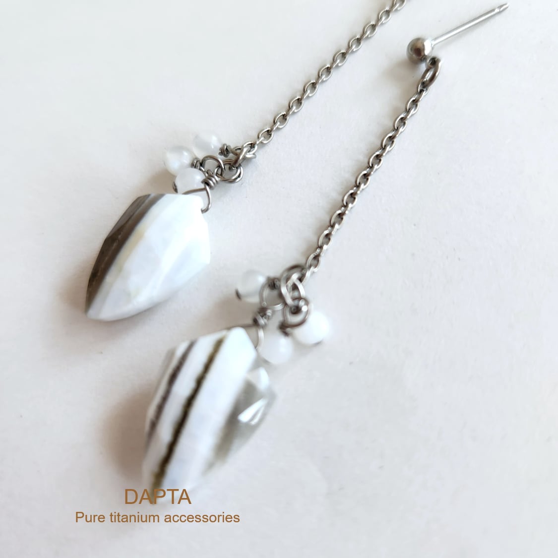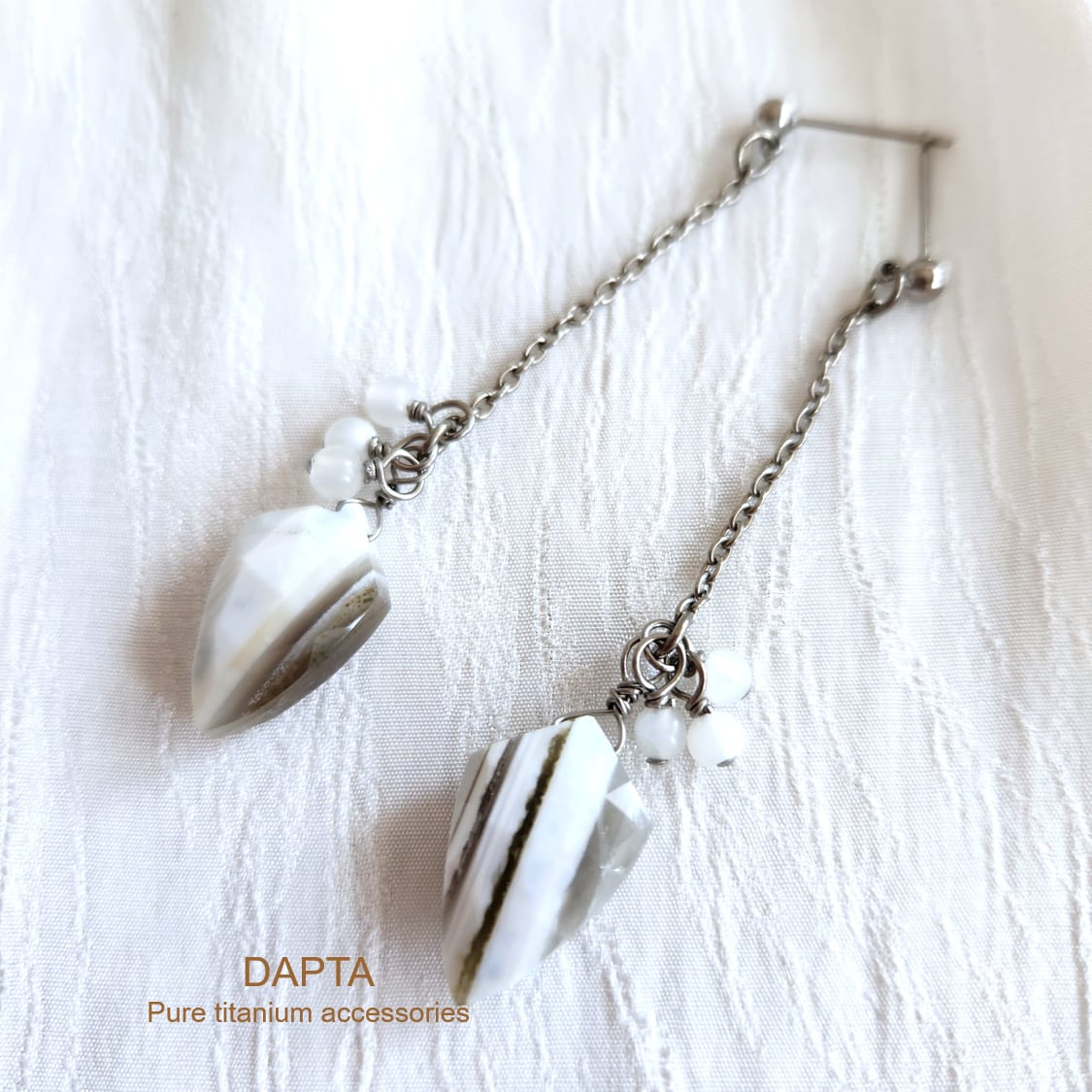 【金属アレルギー対応】純チタン 天然石ピアス デザートオパール×ホワイトムーンストーン
