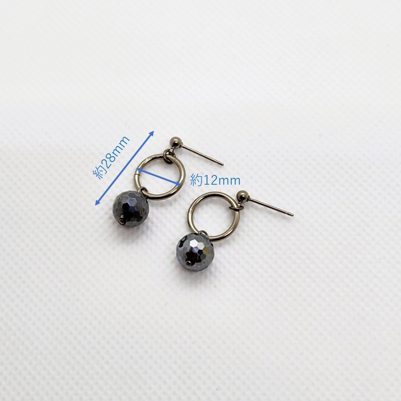 純チタン製のピアスに、テラヘルツ8mm玉とリングがセットされたアクセサリー。