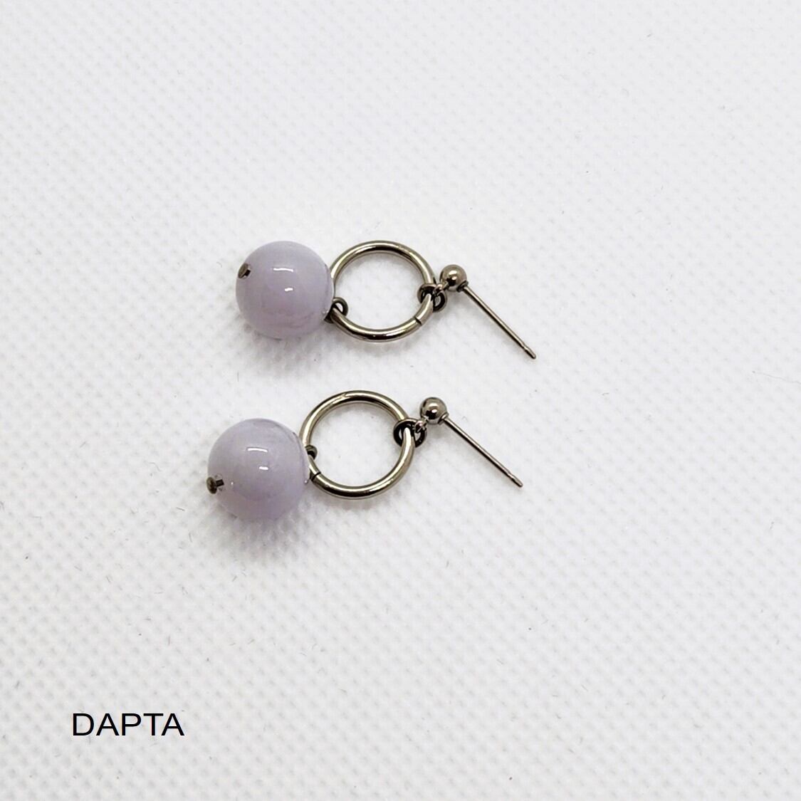 純チタン ピアス リングと天然石ラベンダーヒスイ10mm玉