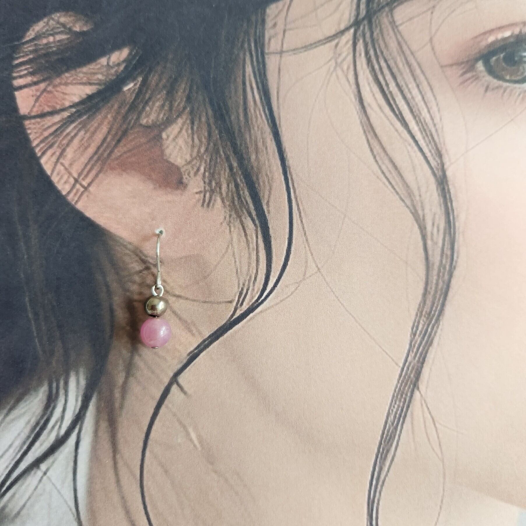 純チタン フックピアス 天然石ルビー6mm玉は、耳元で華やかな輝きを放つアイテムです。