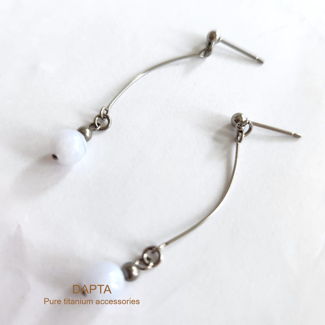 純チタン素材のピアスに、人気のブルーレース天然石を使用した、美しいカーブデザインのアクセサリー。