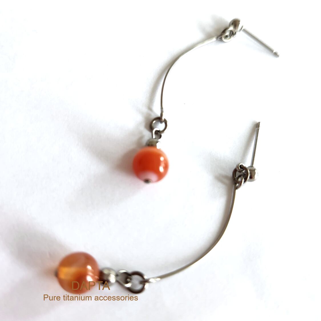 純チタン ピアス 素敵なカーブデザイン 天然石サードオニキス6mm玉は、耳元を華やかに彩るアクセサリーです。