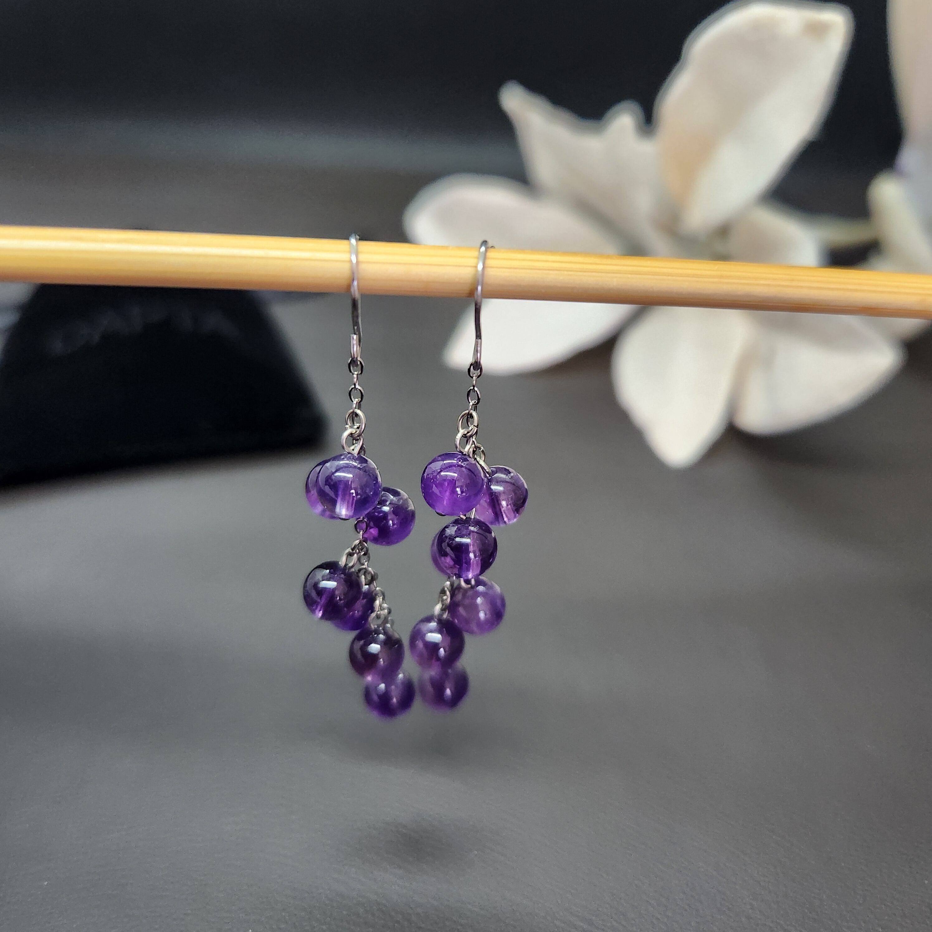 6mm玉のアメジストは、パープルカラーがさりげないアクセントとなり、お顔周りを華やかに彩ります。