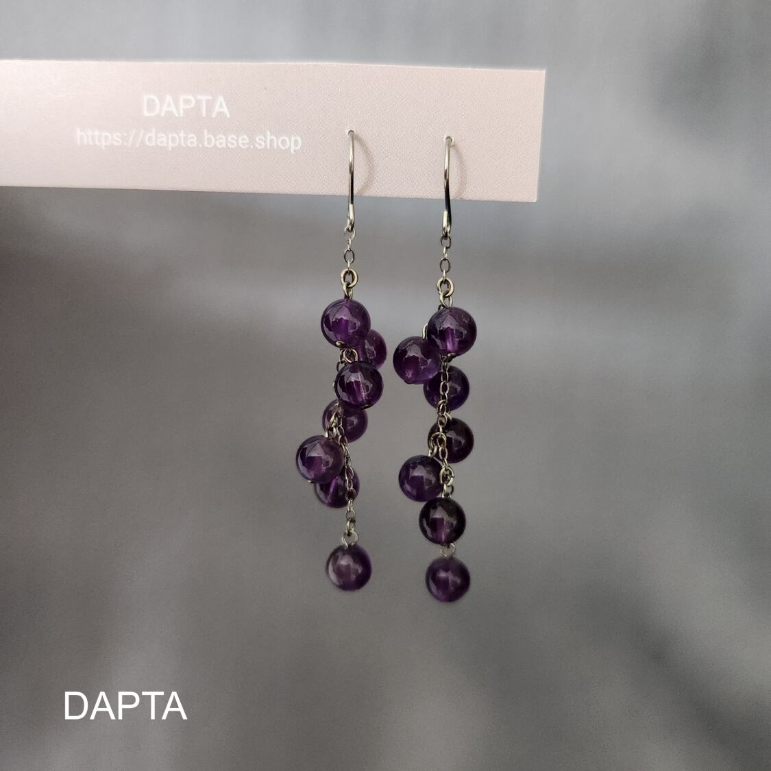 美しい天然石アメジストを使用した、軽量で肌に優しい純チタンのフックピアス。