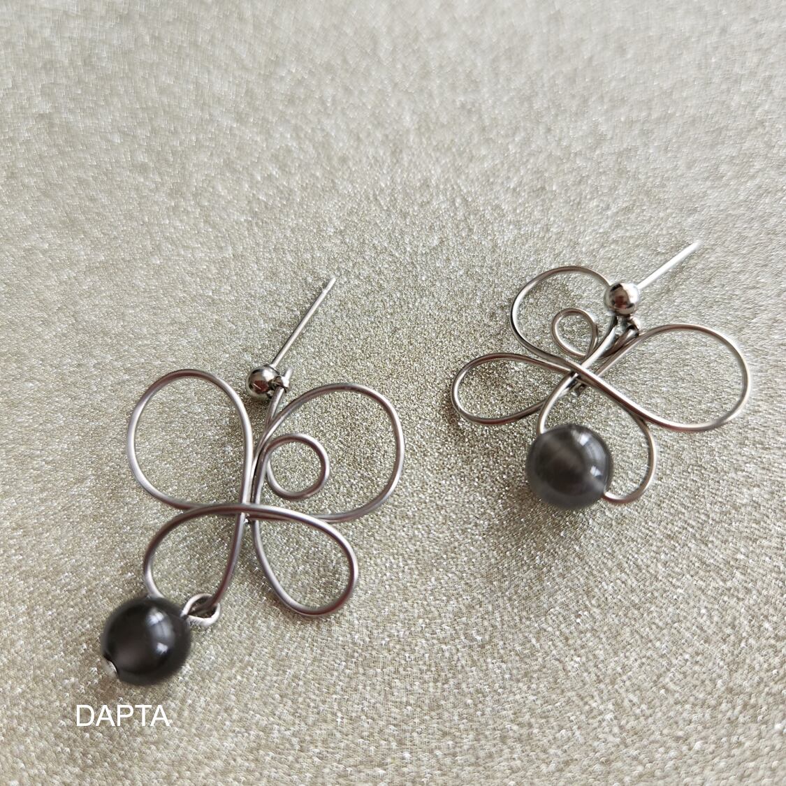 チタンワイヤーからひとつひとつ手作業でチョウチョの形を作っています。華やかに舞っているような蝶々に仕上がっています。